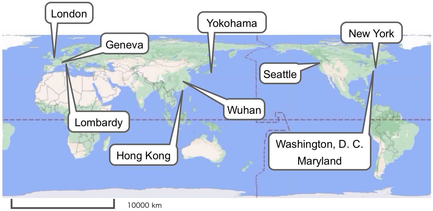 and 1,045 crew was quarantined in February 2020 in Yokohama, Japan, because a 80-year-old man
