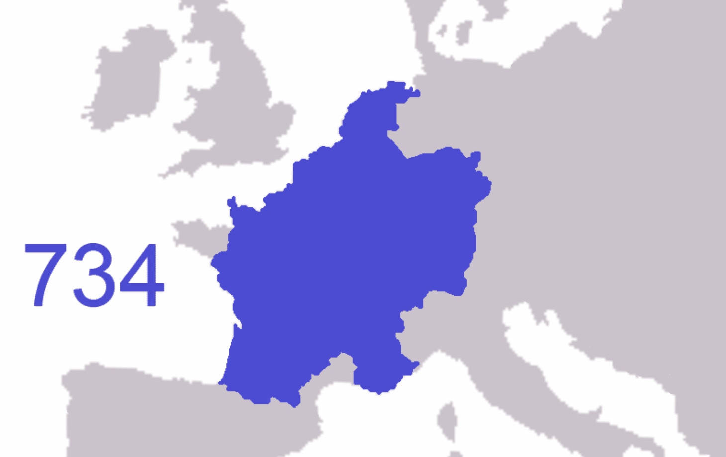 Territories of the Frankish Kingdom as of 734 CE
