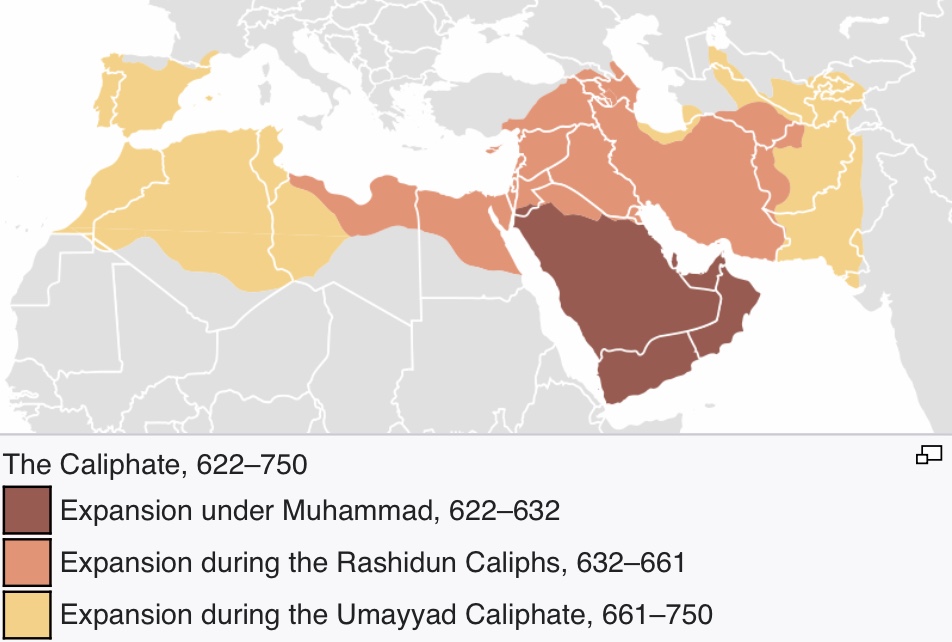 Territories of the Islamic Empire from 622 CE to 750 CE