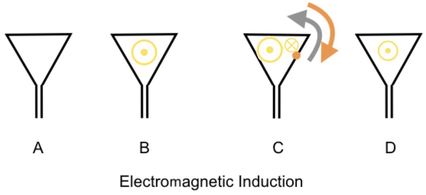 Fig. A above shows a closed electronic circuit conductor. Suddenly, as shown in B,