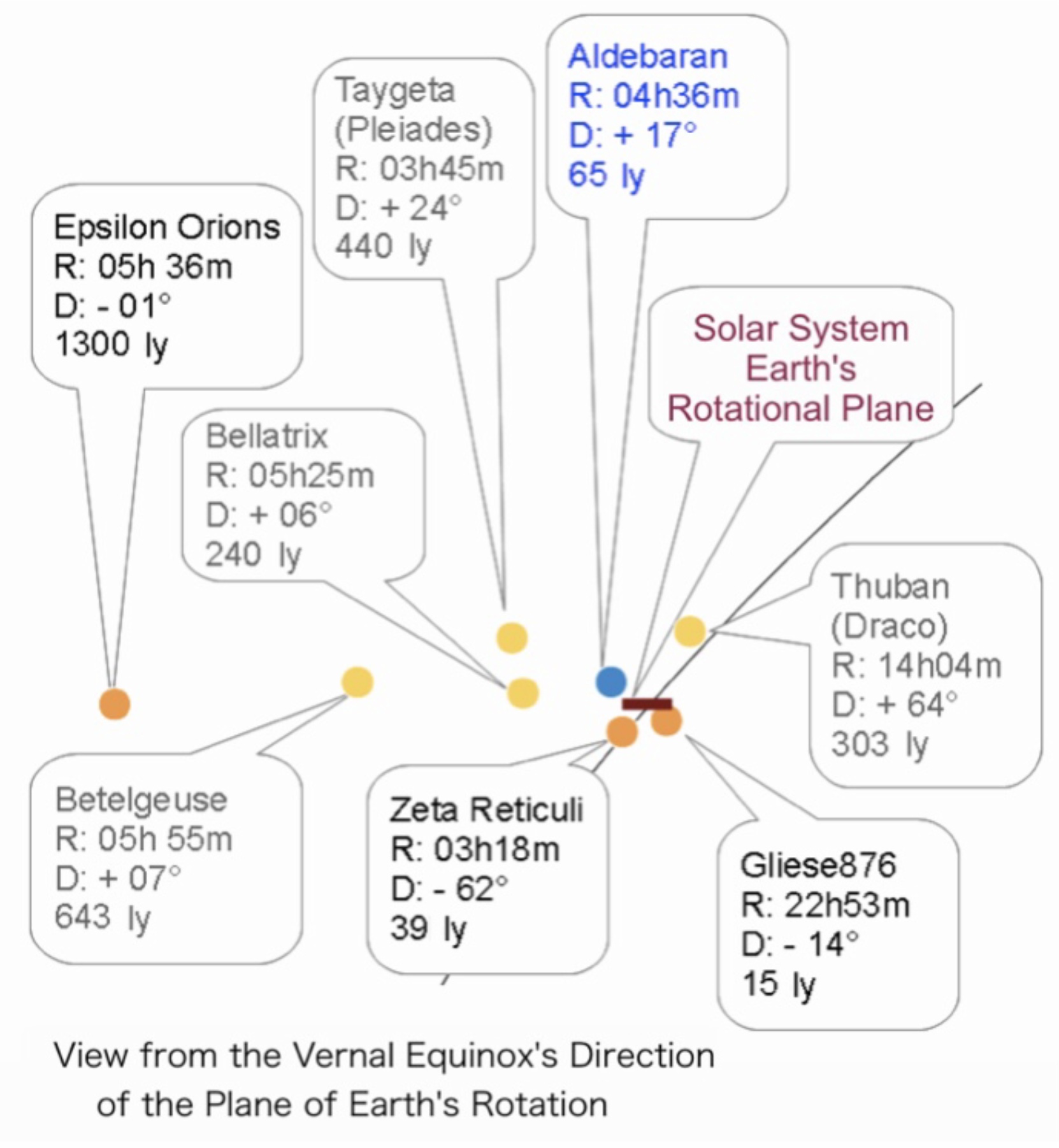 have come from the Thuban star system (Alpha Draconis star system) (Right Ascension: 14h 04m, Declination: +64°, Distance: 303 light-years) in the direction of the constellation Draco. They regard the Earth as their ancient outpost and under their rule. They are said to eat live humans. Furthermore, it is frequently said that they dwelt on or beneath the Earth in ancient times, as referenced in legends of dragons, including the serpent with legs in Genesis.
