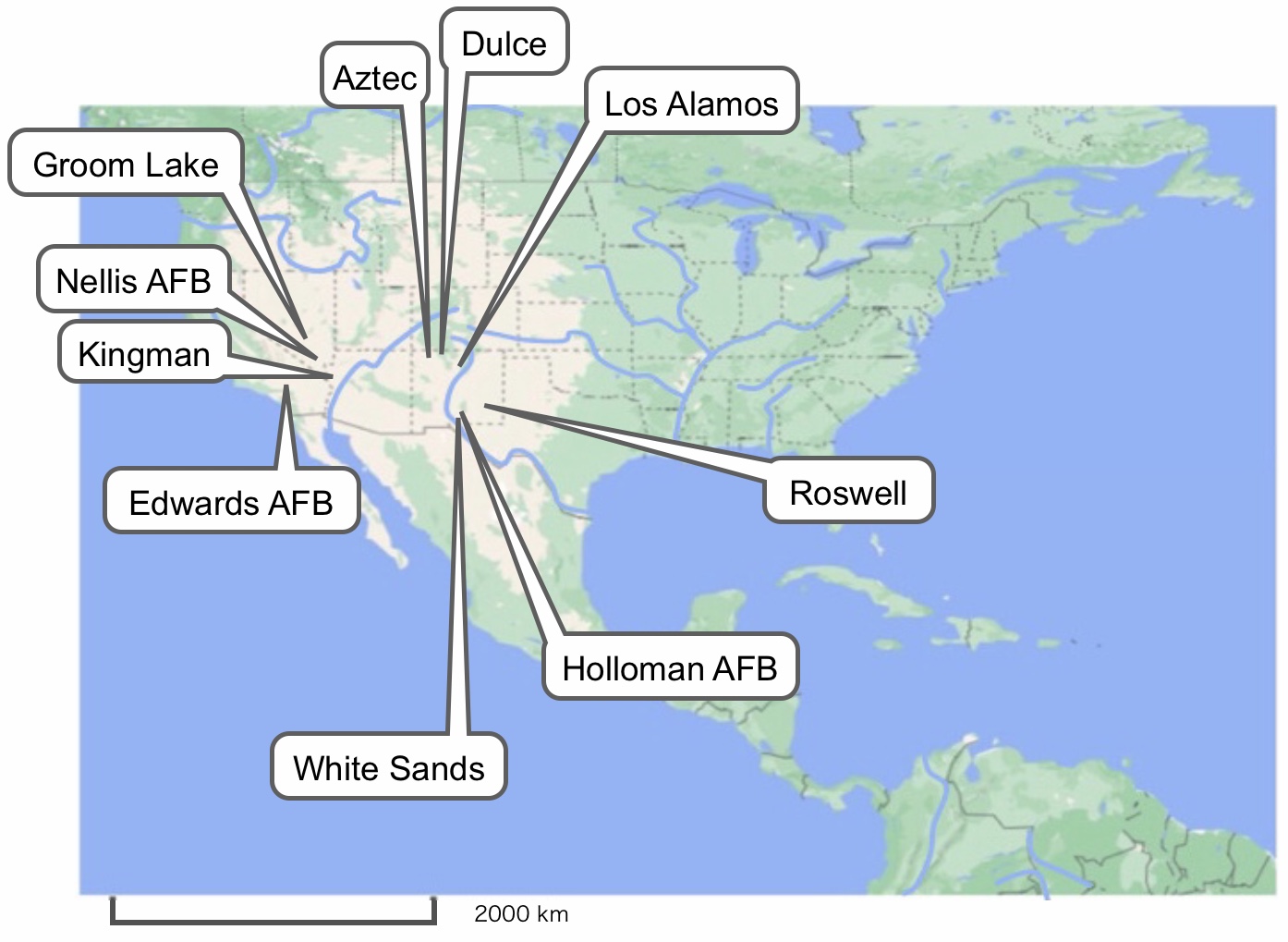Underground bases such as so-called "Dreamland" (in S-4 area 7 miles (11 km)