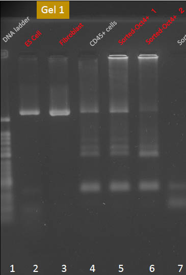 Lane 5 and 6 are Oct-4 expressed and FACS sorted STAP Stem Cells' DNA.