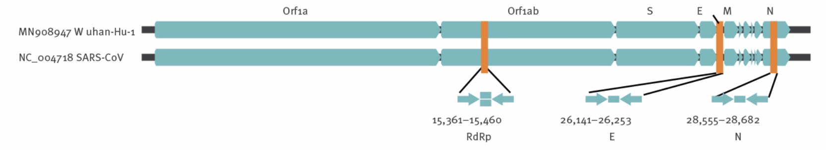 envelope protein (E), and (3) 28,555th - 28,686th responsible for nucleocapsid protein (N).