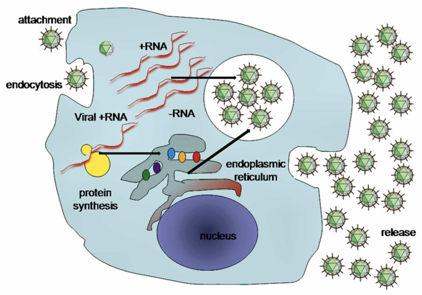 When it enters a living cell, it releases the positive sense mRNA and RdDp,