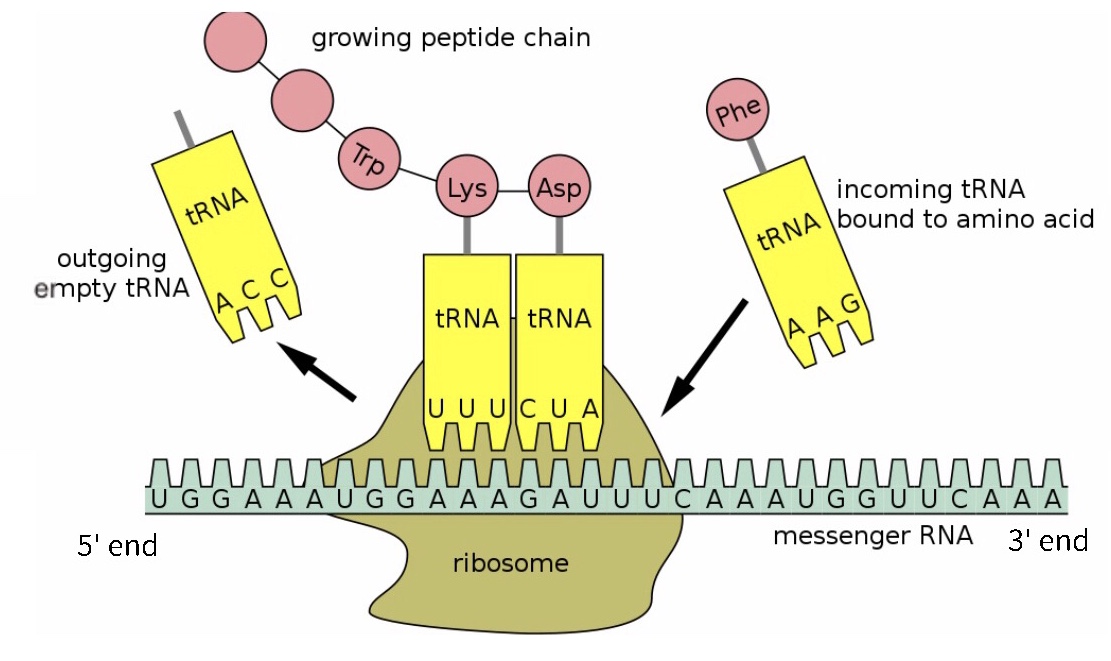 peptides, proteins, and enzymes for replication of the virus are synthesized.