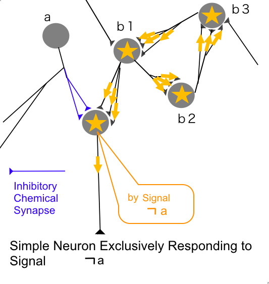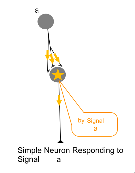 and the postsynaptic neuron generates a signal responding to signal "a".