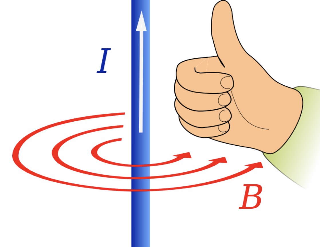 When electric current flows in the direction of the right thumbnail,