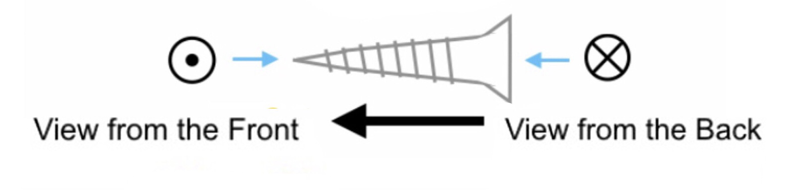 (The circle and X (woodscrew head sign) shows the direction going away.